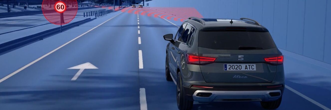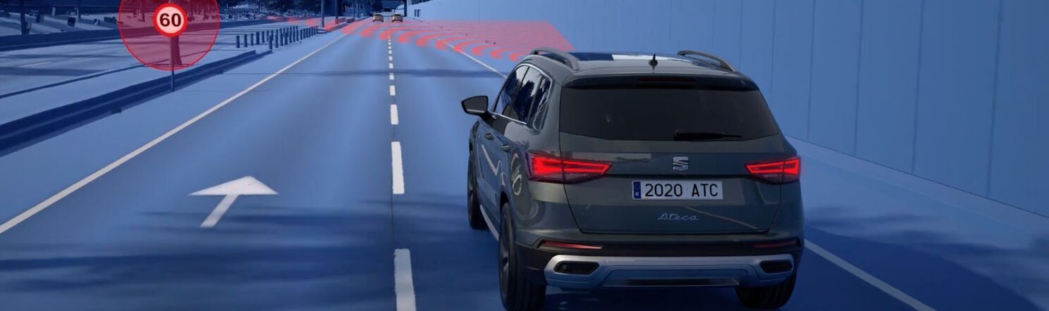 Bezstarostná jazda. Pre bezpečnú jazdu je dôležité prispôsobiť rýchlosť stavu cesty a podmienkam v premávke. Asistenčný systém Travel Assist, vyvinutý pre modernizovaný model Ateca, to uľahčuje. Vodič systém aktivuje stlačením gombíka a ten potom automaticky vedie vozidlo v strede jazdného pruhu, udržiava bezpečný odstup od vozidla idúceho vpredu a v kombinácii s prediktívnym adaptívnym tempomatom ACC aj zohľadňuje priebeh cesty na základe údajov navigácie a prispôsobuje rýchlosť podľa rozpoznaných dopravných značiek.
